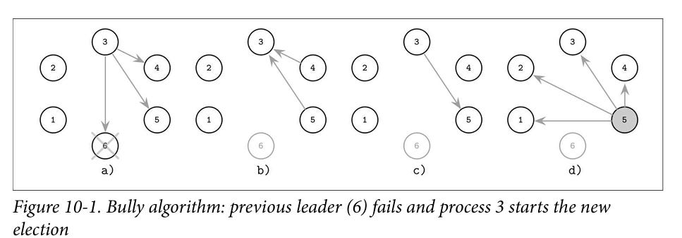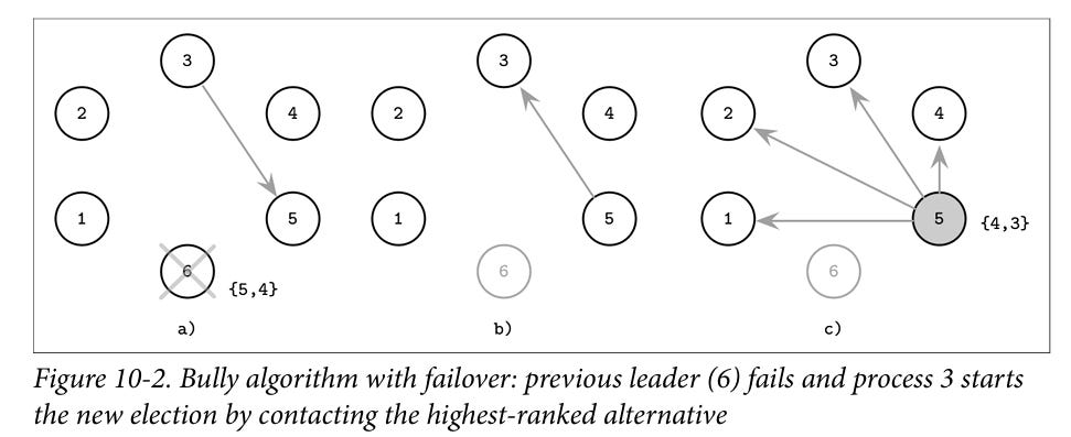 A variant of the bully is the Next in line failover. Here along with the leader, each nodes also know which would be the next leader in case the current leader fails [ designated survivor] . Hence on leader failure, the probe is sent only to the designated survivor node and the remainder of the algorithm is similar to bully.
